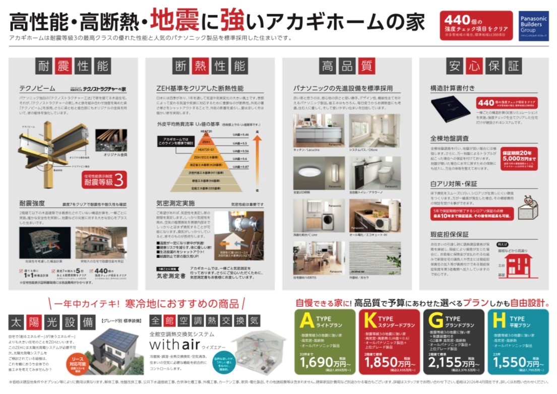 もちろんすべてのモデルハウスがテクノストラクチャー設計となっており、耐震性の高い安心・安全なお家です。