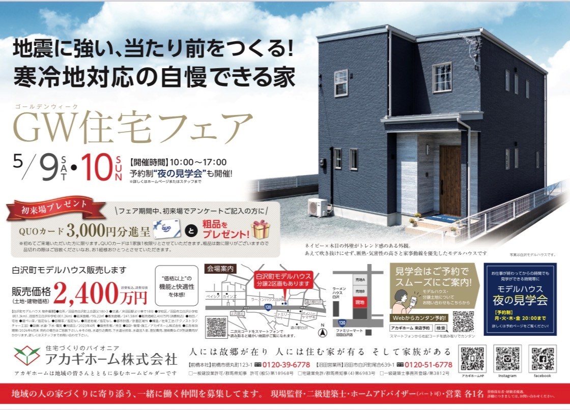 【GW住宅フェア開催】地震に強い家!見学会 @ 沼田市白沢町